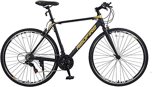 Redfire Hybrid Bike for Men and Women, 21-Speed Shimano Drivetrain, 700C Wheels,19/21 Inch Aluminum Frame, City Commuter Bicycle for Adult, Black
