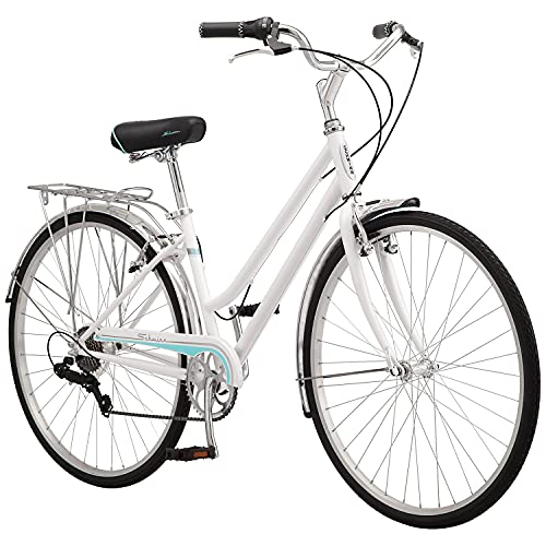 Schwinn Wayfarer Adult Bike Hybrid Retro-Styled Cruiser, 16-Inch/Small Steel Step-Through Frame, 7-Speed Drivetrain, Rear Rack, 700C Wheels, White